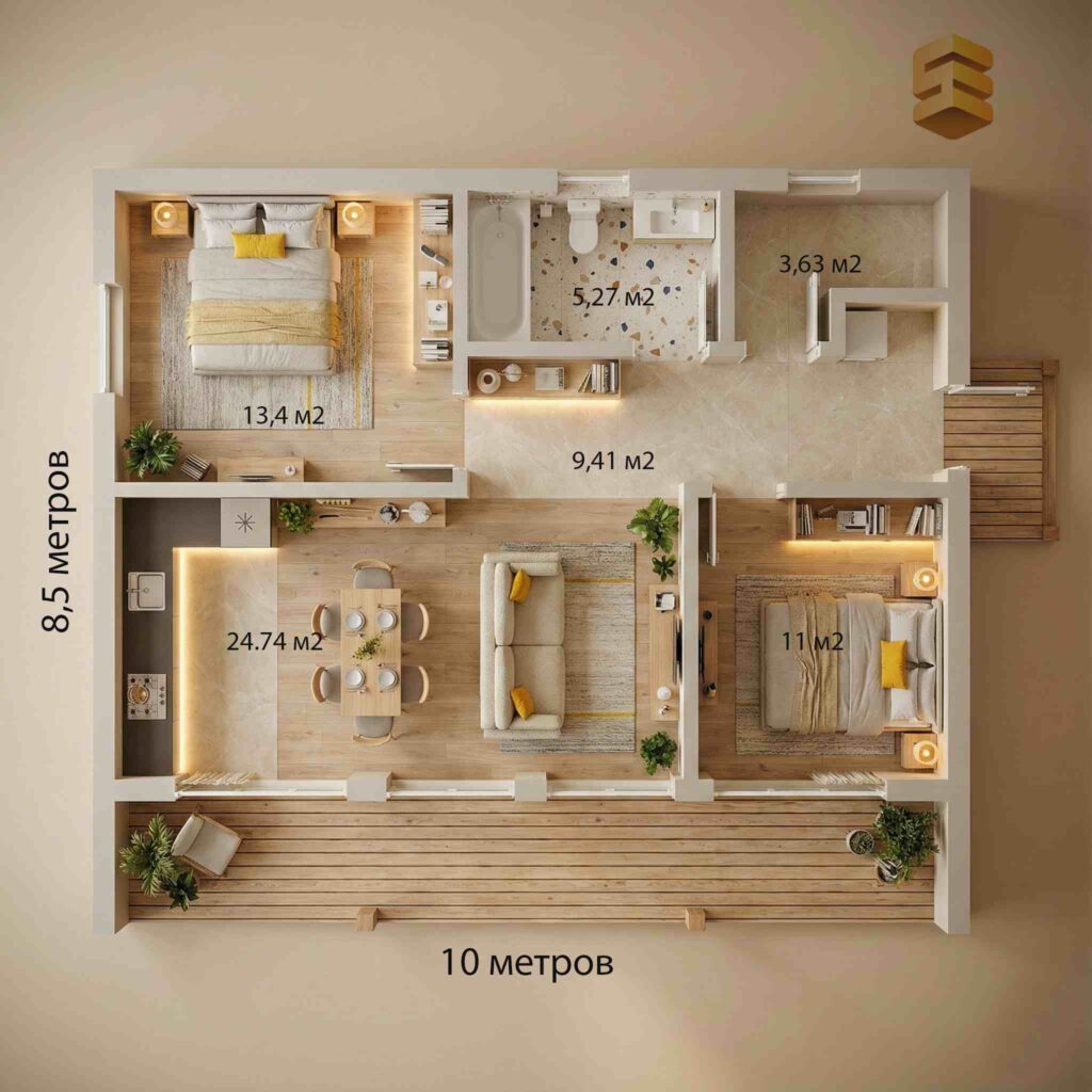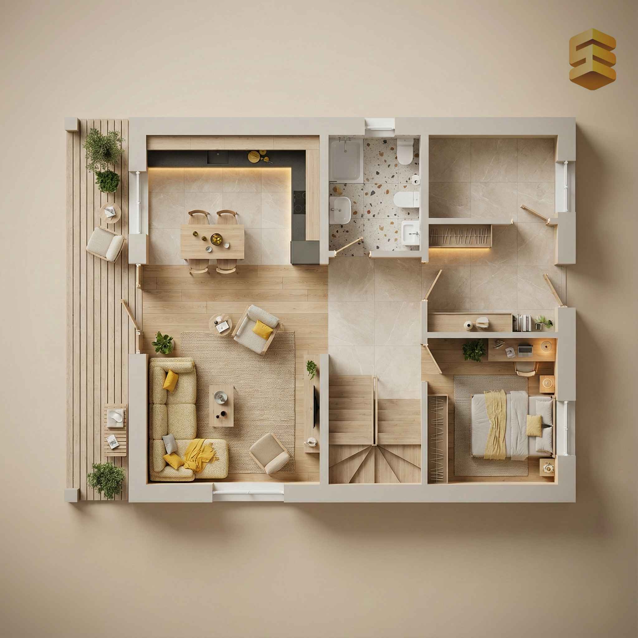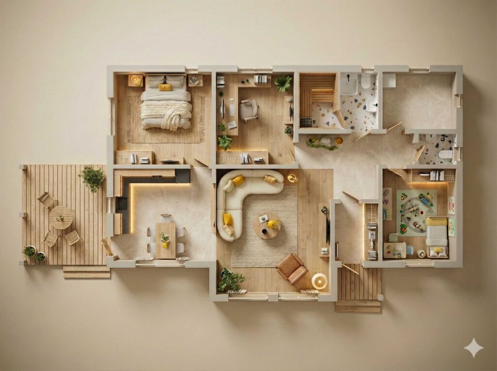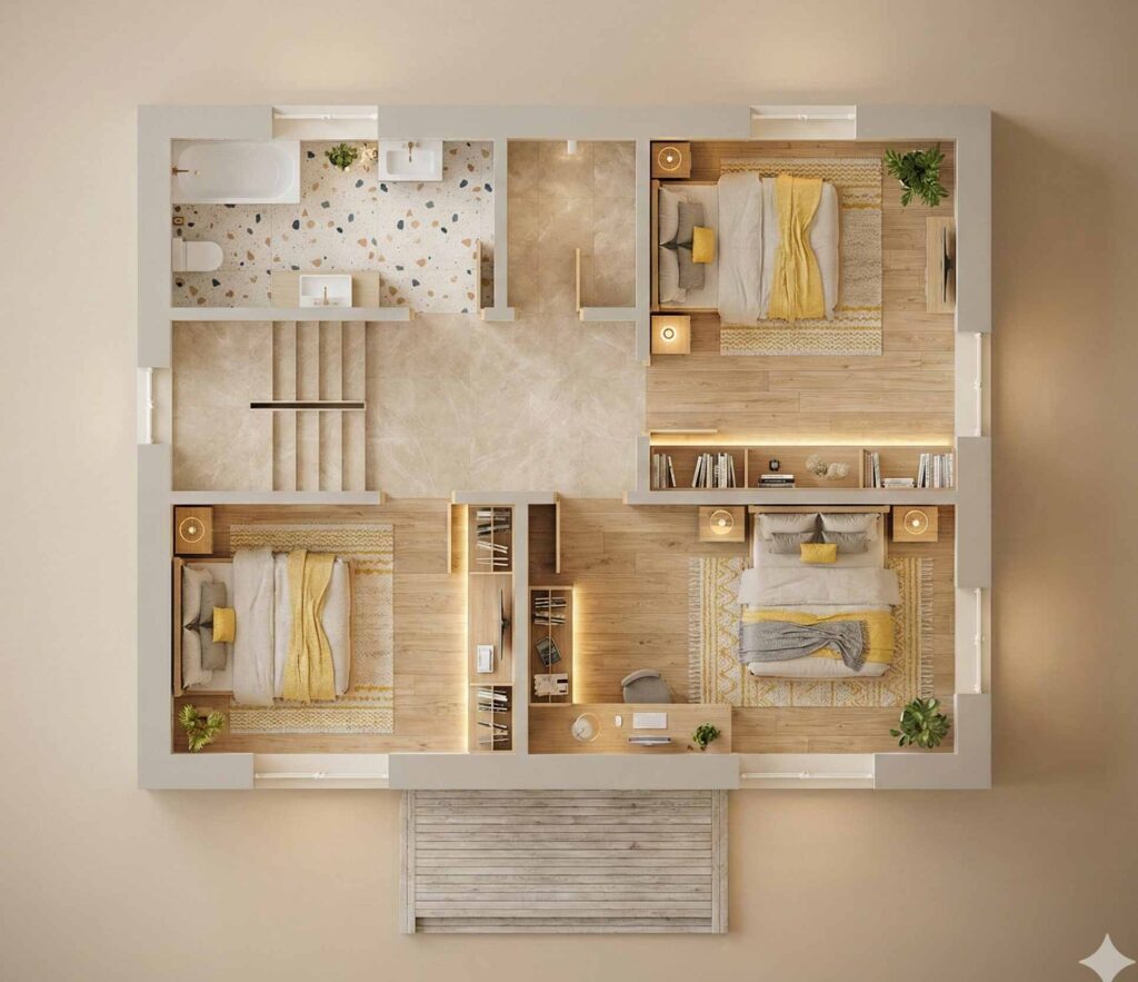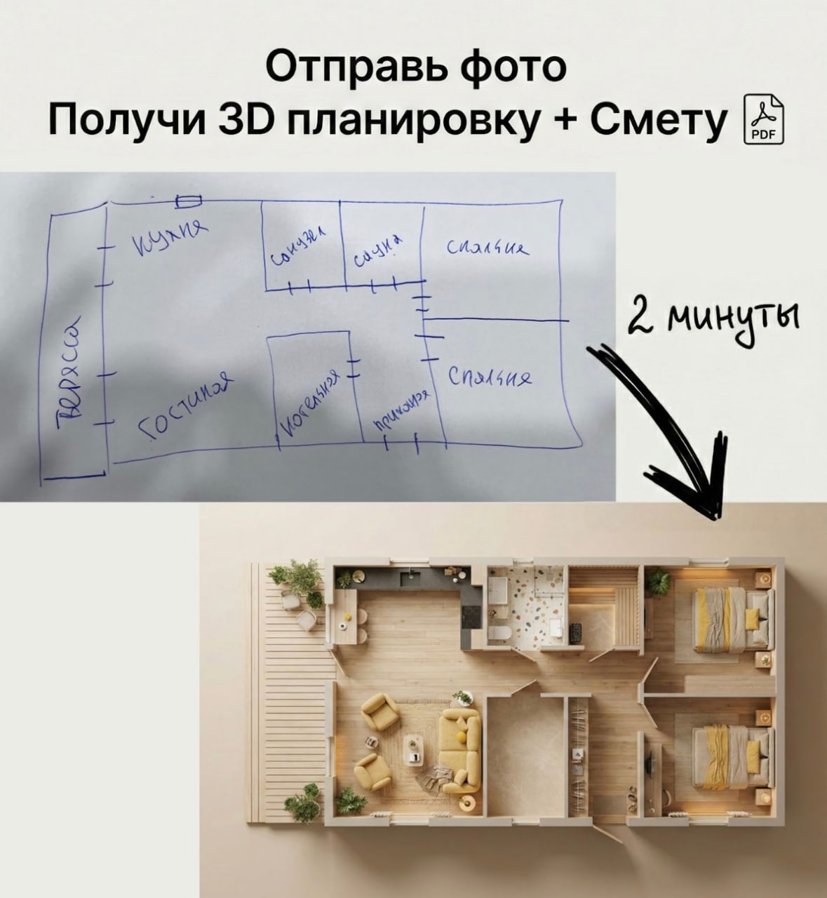 вы рисуете планировку от руки - хоть очень примерно - и буквально через пару минут видите ее в виде красивой 3D-планировки. Уже не “мысли в голове”, а понятный вариант будущего дома, который можно крутить, обсуждать и дорабатывать