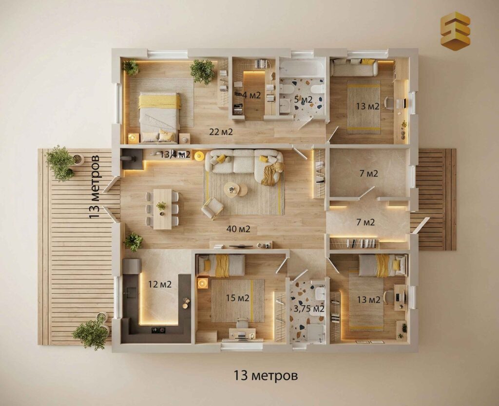 При визите в офис предложим 2-3 варианта планировки и 3D макет дома с отделкой